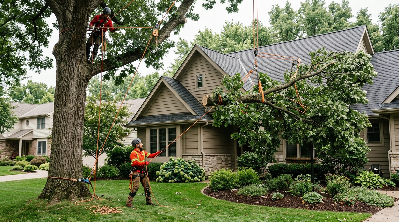 Trees with heavy dead limbs, storm damage, or a strong lean are higher risk. We use more advanced rigging and extra ground support on these jobs, and that added time and safety planning is reflected in the final tree service prices.