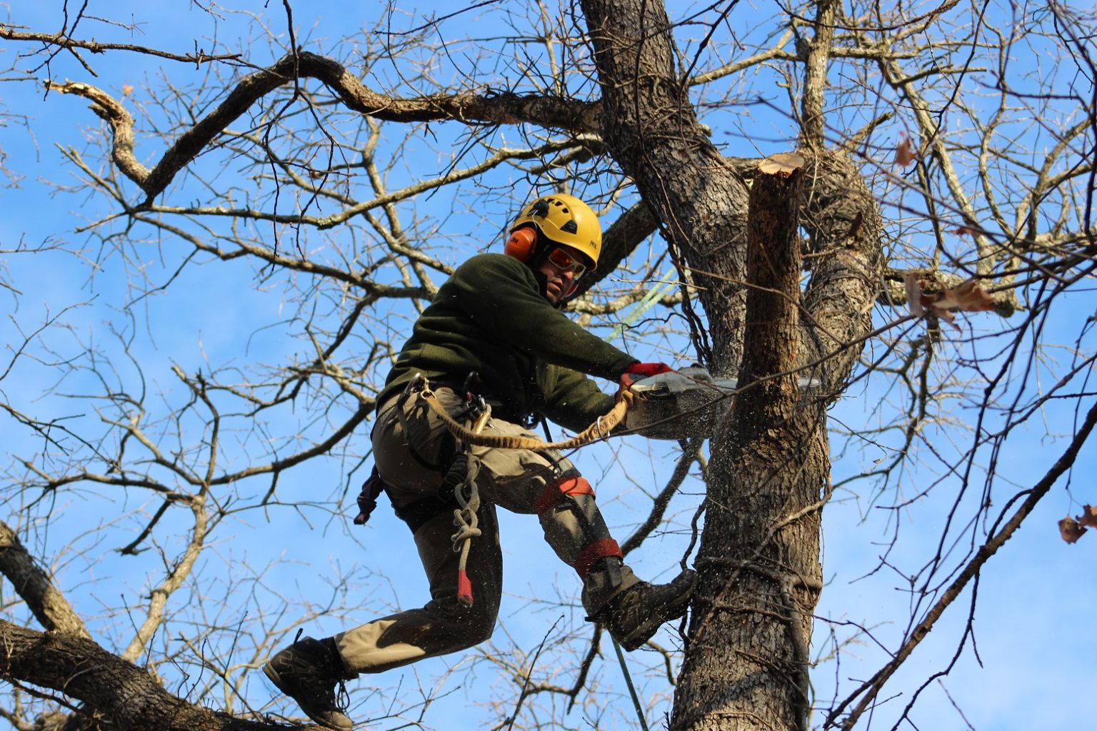 Large Broken Limbs: Heavy limbs that are broken but still attached, creating “widow-makers” that could fall at any moment