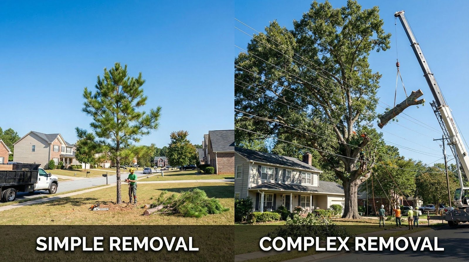Tree work is more like a small construction project in your yard than a simple flat-fee service, and the cost of tree removal can vary a lot from one property to the next. The same sized tree can be simple in one yard and a full tree removal job in another, especially in hard to reach places or tight spots near the house.